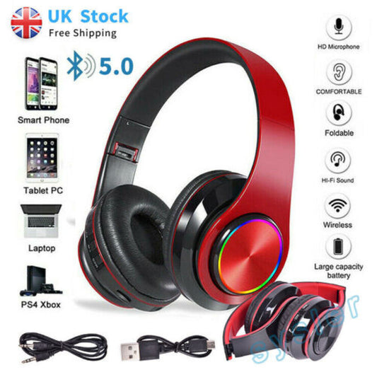 Wireless Bluetooth 5.1 Headphones Noise Cancelling Over-Ear Stereo Earphones UK